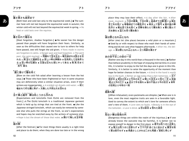 It presents more than 10000 idiomatic phrases under 1000 main entries, including several thousands of idioms never presented and explained in English before. Multiple sample sentences are given for each entry, and furigana allows even beginning students to pronounce correctly and to use the expressions immediately. A thumb index, duo-tone printing, and newly added full English index make entries exceptionally easy to access.